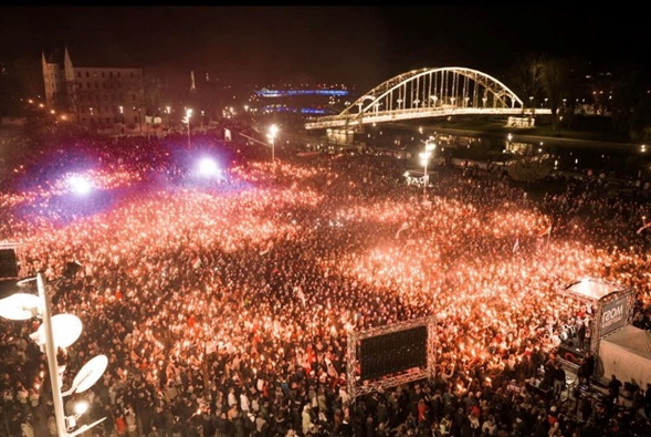 Ovan en bild från sociala medier från den enorma manifestationen för Tisza och mot Orban i centrala Budapest igår kväll. Rapporter från personer som var där talar om känslan av en revolution i likhet med Maidan i Ukraina. Och det är framförallt bland den yngre delen av Ungerns befolkning som stödet för en mer västvänlig och europeisk linje är som starkast. För egen del är jag förvånad över att en del äldre ungrare uppskattar Orbans putinvänliga linje. Det är som om de redan har glömt Sovjets blodiga invasion i samband med Ungernrevolten 1956.
