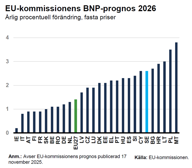 * Svensk tillväxt spås i år bli bland de högsta i EU
