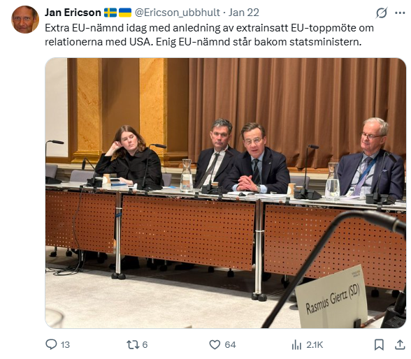 Om USA sviker sina tidigare garantier till Ukraina måste Europa höja ryssarnas kostnad och öka stödet till Ukraina ännu mera. I kampen mellan gott och ont finns inga kompromisser. Etik och moral måste vara ledstjärnan. Terroriststaten Ryssland hotar oss alla, precis som Nazityskland gjorde. Men denna gång spelar inte Sverige under täcket med krigsgalningarna utan står upp för det som är rätt och moraliskt. Nämligen Ukrainas frihet och rätt att existera inom sina internationellt erkända gränser.