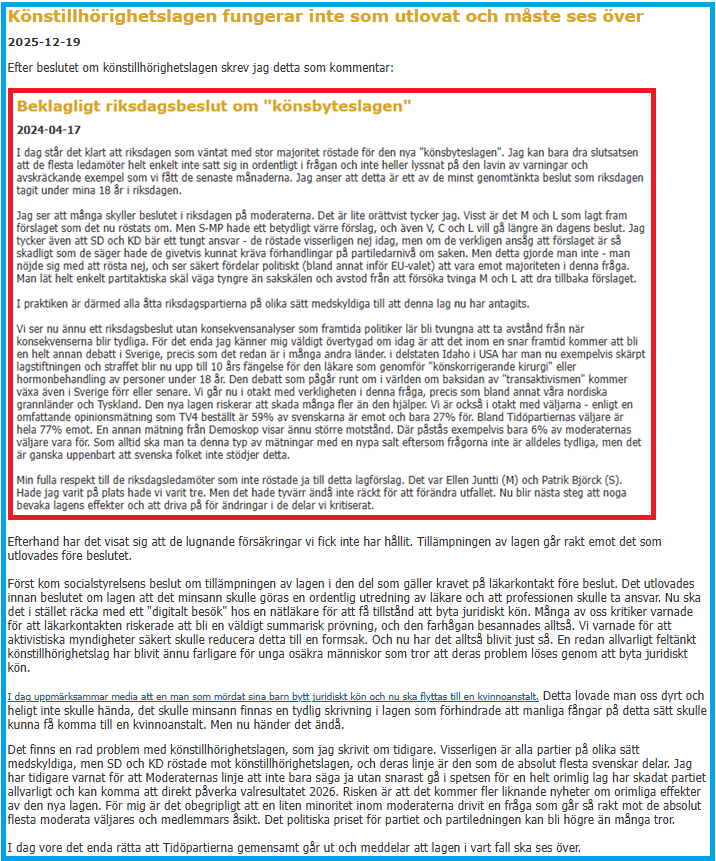 Jag skrev ju mycket kritiskt om vaccinhysterin under pandemin, inte minst om obligatorisk vaccinering i vissa länder och om talet om vaccinpass i Sverige. Jag varnade flera gånger för att denna hysteri riskerade att på sikt skapa allmän misstro mot vacciner. Vaccinering ska bygga på frivillighet och att människor själv kan göra val att vaccinera sig mot olika sjukdomar, väl informerade om nytta och risker med olika vaccin. Ingen ska pressas eller tvingas att ta vaccin eller att på andra sätt genomgå medicinska behandlingar.