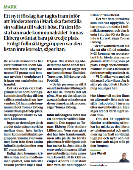 2002-2006 var jag som deltidspolitiker gruppledare för moderaterna och den styrande majoriteten i Marks kommun. I valet 2006 valdes jag in i Sveriges Riksdag och fick förnyat förtroende 2010, 2014, 2018 och 2022. Är idag ordinarie ledamot i Riksdagens finansutskott och ordinarie ledamot i EU-nämnden, samt en av riksdagens ålderspresidenter. Jag är även moderaternas representant i Europaparlamentets största partigrupp EPP:s arbetsgrupp för ekonomiska frågor samt ordförande i Riksdagens Råd för Riksrevisionen. Tillsammans med tre moderata kolleger har jag startat Riksdagens Bilnätverk för att värna om privatbilismen och näringslivets behov av fordonstransporter. Jag är även vice ordförande i Riksdagens svensk-ukrainska parlamentarikerförening, aktiv i riksdagens fordonshistoriska nätverk samt medlem i riksdagens nätverk för djurskyddsfrågor. Alla mina tidigare uppdrag hittar du här.