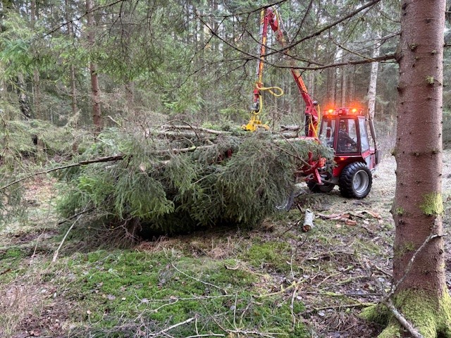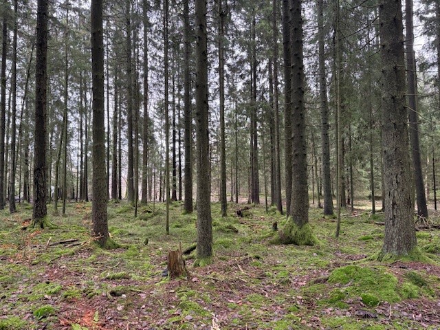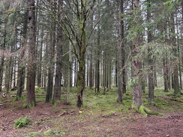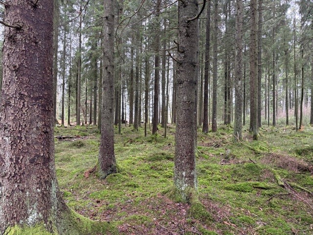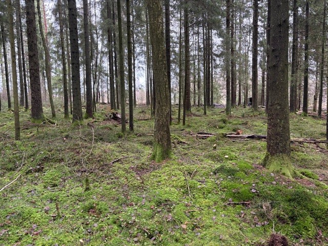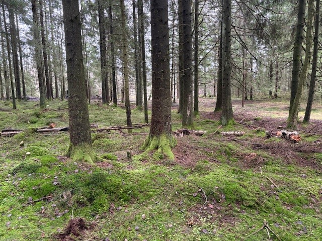 När man har en liten "trivselskog" som inte är en produktionsskog med avkastningskrav kan man unna sig att skapa en blandskog med både äldre och yngfre träd. Nu är hela skogen rensad och gallrad efter fyra års arbete och god hjälp av erfaret folk med en liten smidig skogsmaskin som kör mellan träden utan att förstöra marken.