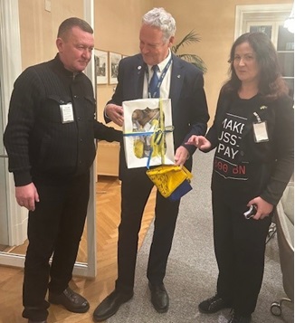 Som alltid vid dessa möten uttrycker ukrainarna sitt stora tack till Sverige och Sveriges Riksdag, och vi får ofta presenter. Denna gång bland annat två ukrainska dockor tillverkade i Sumy-regionen. De får ta plats i riksdagens presentskåp.