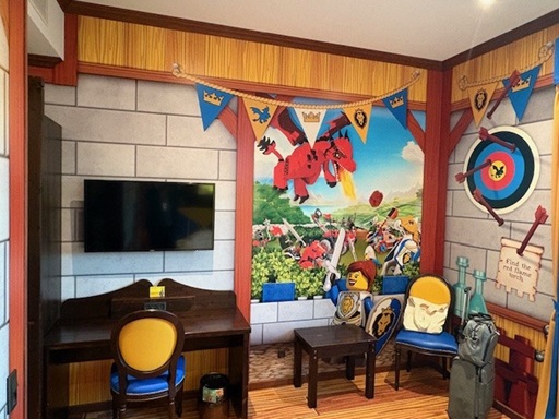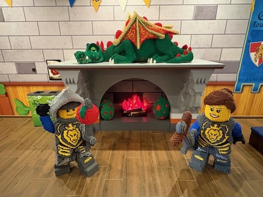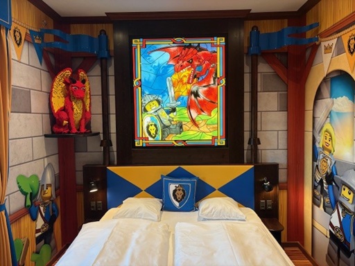 Incheckningen på Lego Castle Hotel kändes lite annorlunda än de hotell vi normalt bor på vid resor till andra länder. Men hotellobbyn och alla hotellrum i Legoland ser ut ungefär såhär, legofigurer både inne och ute. Kändes lite som att sova i lekrummet på en förskola.
