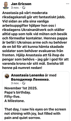 Och här några av mina inlägg för att stödja insamlingen i början av november. Jag gick i god för att pengarna skulle gå till det som utlovats, och självklart blev det också så. (Det kan också bli ytterligare någon överraskning framöver, stay tuned!)