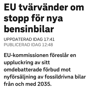 Personligen anser jag också att Sverige måste göra upp med EU:s klimatpolitik och inse att den allvarligt skadar vårt land. det duger inte att Sverige fortsätter gå i spetsen för en radikal klimatpolitik, utan vi borde gå i spetsen för att göra ordentliga konsekvensanalyser av klimatpolitiken och se till att denna blir rimlig och hanterbar.