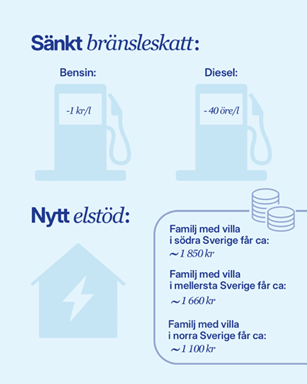 Denna mandatperiod har vi kraftigt sänkt reduktionsplikten och sänkt bränsleskatterna. Vi har även levererat ett elstöd på cirka 43 miljarder kronor för att kompensera för nedlagd kärnkraft.