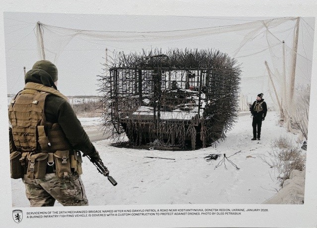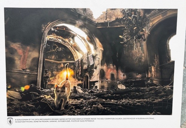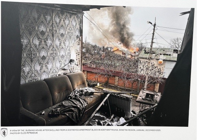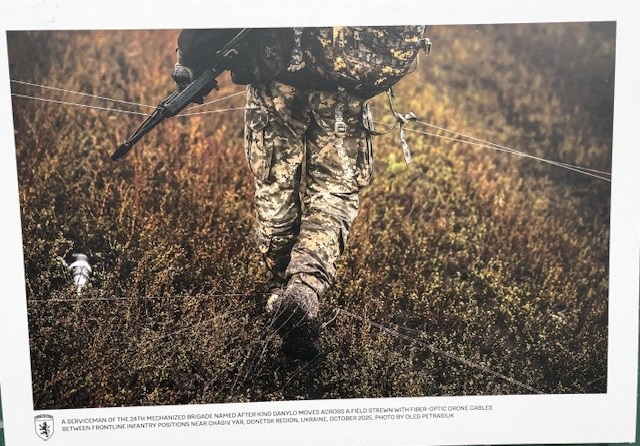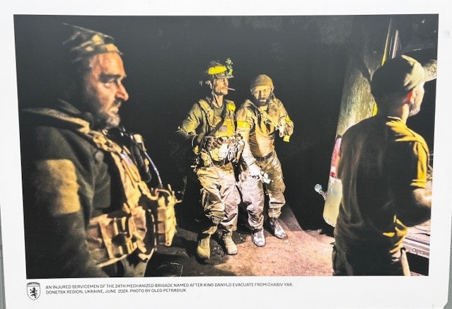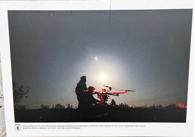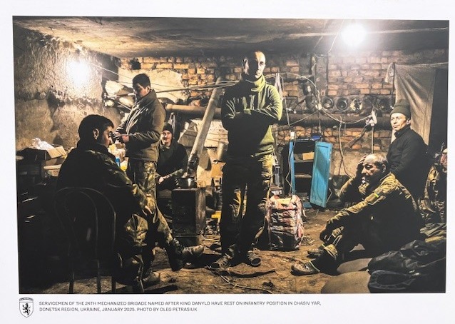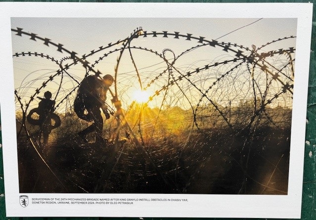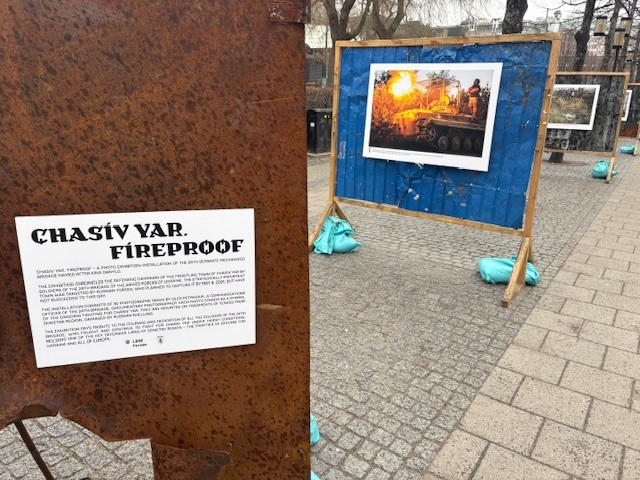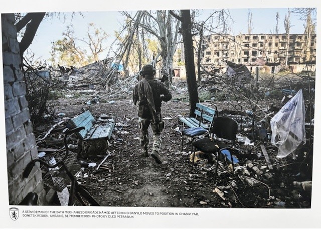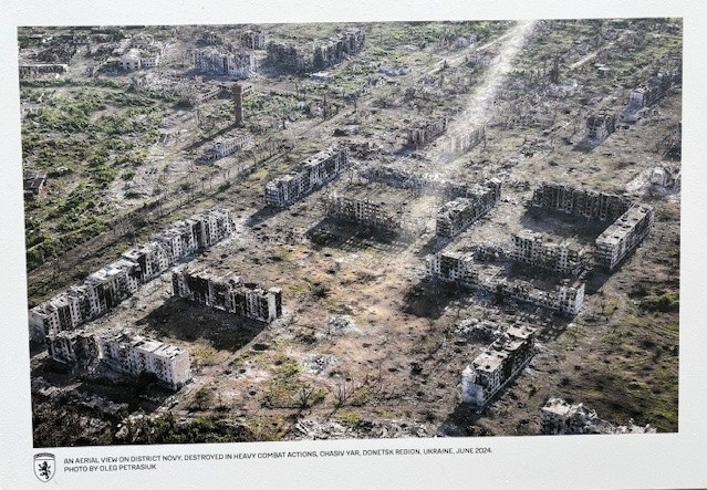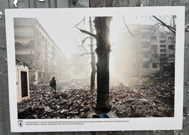 Denna vecka finns en intressant och gripande utställning med foton i storbildsformat från östra fronten i Ukraina (framförallt från Chasiv Yar och Kostiantynivka). Det är foton från militärens arbete vid fronten och från förstörda ukrainska städer.