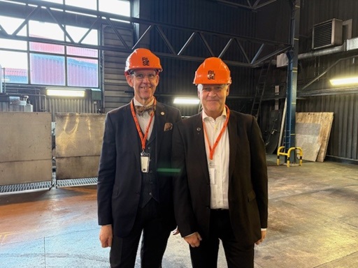 Här är jag och m-kollegan Ulrik Nilsson i sedvanligt charmig utrustning under rundvandringen i bandlabben på Rise.