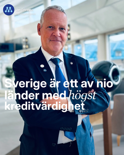 Sverige är ett av endast 9 länder i hela världen som har maximal kreditvärdighet hos alla de tre stora internationella ratinginstituten, S&P, Moodys och Fitch. Detta är en kvalitetsstämpel på Sveriges extremt välskötta statsfinanser och låga statsskuld.