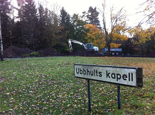 Bilder från dagens hundpromenad. Återuppbyggnaden har startat, nästan två år efter att kapellet brann ned.
